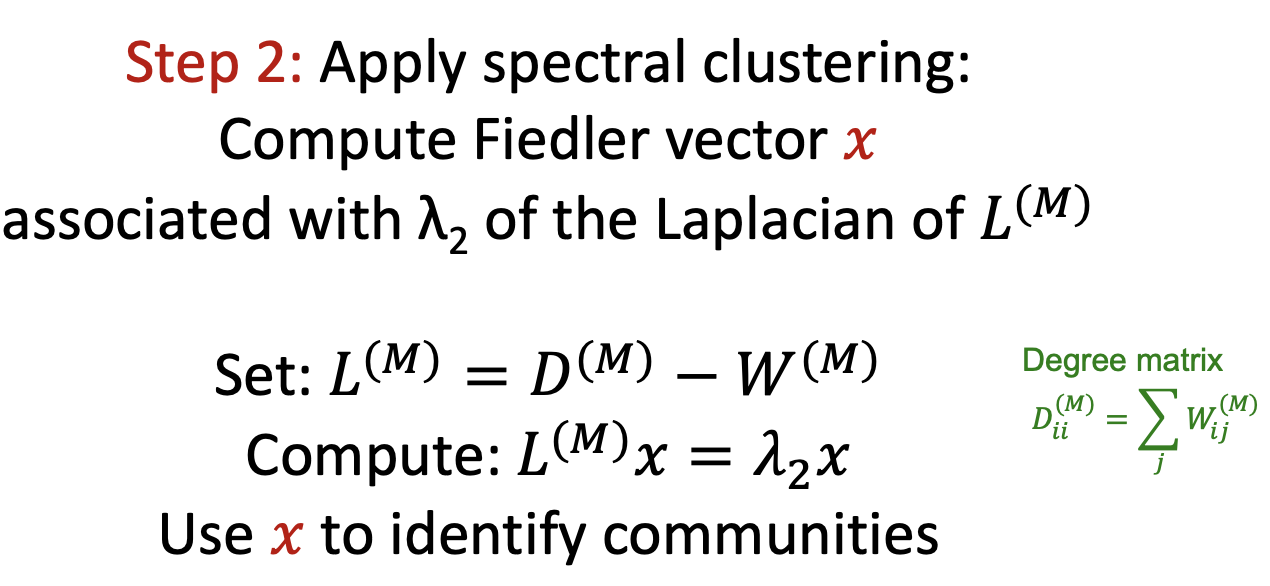 2. Spectral clustering을 적용합니다. W에 대해서 Laplacian을 구해서 eigenvector와 eigenvalue(정확히는 Lambda2 값)을 찾습니다.