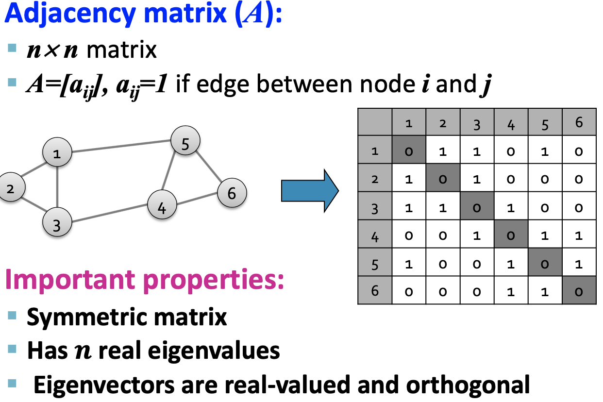 - Spectral Graph Theory는 이처럼 matrix representing G 의 Spectrum 을 분석하는 방법입니다.