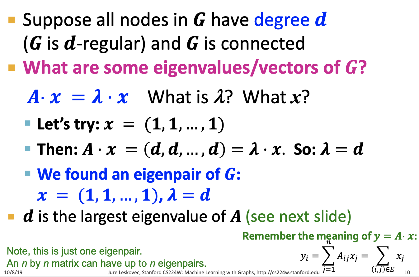 - x = (1,1,...,1) 일 때를 보면, A · x = (d,d,...,d) = lambda · x 이다.
