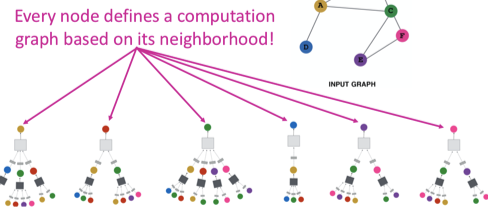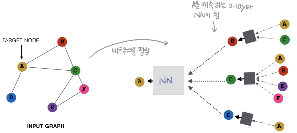- 네트워크 이웃들이 computation graph를 정의합니다.