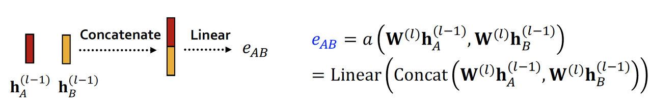 2. 각 노드의 임베딩 값들을 concat해서 e_AB가 계산됩니다.