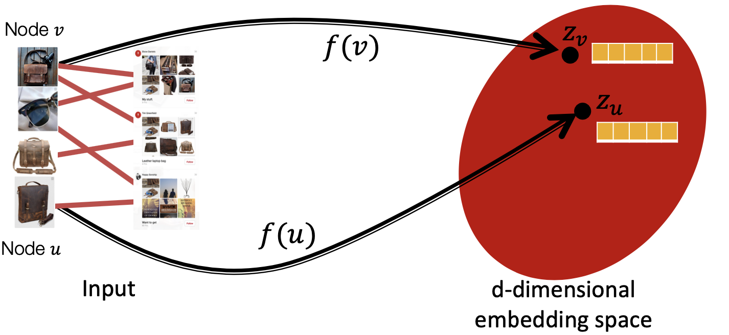 node를 각 이미지로 하고 노드 v를 node embedding을 해서 유사한 노드 u를 찾고 노드 u의 이웃을 추천해줍니다.