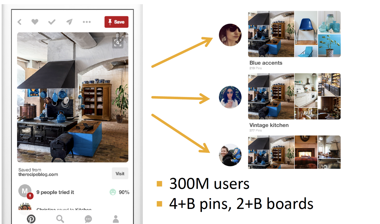 적용사례로는 PinSAGE 를 보겠습니다. 앞선 강의들에서 그래프 모델의 재미있는 사용예시로 보여줬던 Pinterest의 추천시스템 입니다.