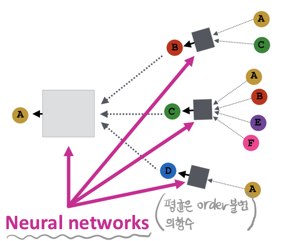 노드 A에 대한 feature를 A의 이웃 노드 정보를 NN으로 수집해서 나타냄